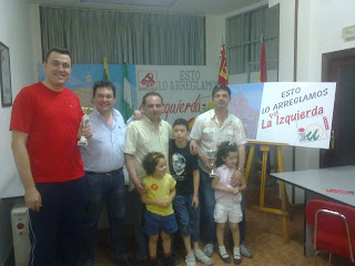 No quiero terminar sin destacar la labor de organización y coordinación de este evento llevada a cabo por los máximos dirigentes del equipo de fútbol IU-PCE: Juan Antonio Lázaro Gámez, José Palomares Martínez, José Gómez Lanzas pero, sobre todo, Fernando José García Martínez, principal gestor tanto del equipo de fútbol como de las actividades llevadas a cabo en nuestra sede. Éstas personas junto a algunos colaboradores (como Miguel y Alba Espinosa, responsables del bar de la sede) hicieron que este evento se desarrollase con un éxito rotundo tanto a nivel de ocio como de reunión social. En un futuro muy cercano se llevará a cabo una nueva actividad en la sede de IU y PCE: el II Torneo de Ajedrez que continuará con el ciclo de actividades programadas para el presente año y en el que seguramente habrá novedades con respecto al año pasado. Ni un paso atrás. Salud.